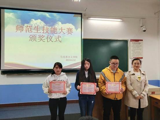 本次活动由王珂欣和白纪龙两位同学主持。参赛选手由班内胜出的9位选手组成。整个比赛严格按照公司师范生技能比赛规则进行。经过激烈角逐,路佩佩同学荣获特等奖,周丰、史晓慧和刘承同学(并列)荣获一等奖,李伟豪和慕其玲同学荣获二等奖,任梦瑶、甘敏霞和刘臻同学获优秀奖。