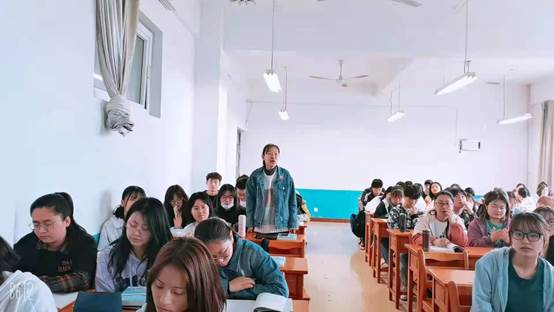同学们完成课前导入演讲后,白赵峰老师进行点评打分,并让每个小组成员和其他听课同学说出存在的问题。白赵峰老师对每组的演讲都进行客观公正的评价,对于表现好的地方给予高度的赞扬与肯定,对于不好的部分也是毫不留情的批评。