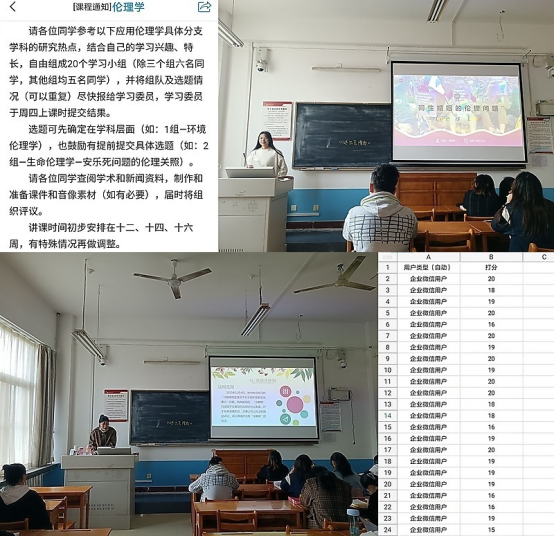 为落实学科教学目标,创新课堂教学模式,本学期思政191、192和193班的《伦理学》课程在思政系教师杨飞洋的组织下,以主体间性课堂教学改革为重点,坚持线上线下并举、课内课外融合的教学原则,让专业课教学变得有高度、有深度、有广度、有温度。
