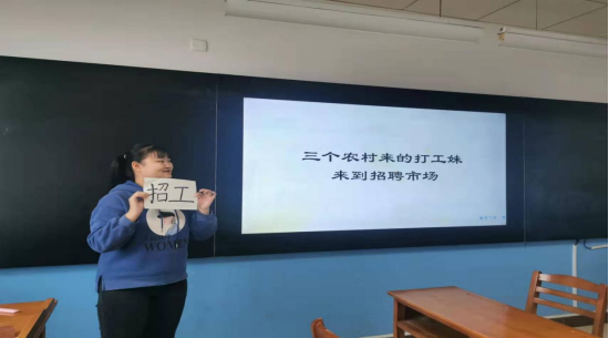 本次活动以妇女在社会中所面临的困难以及社会工作者介入为中心展开,小组成员自行编写剧本,分配角色,将感情融入在角色中,用生动的语言、形象的动作演绎所扮演的角色。演绎中,同学们巧妙地结合生活实际、方言、人物性格、社会工作的专业方法和技巧等将剧情推向高潮,观看的员工反应热烈,掌声、欢笑声此起彼伏,给观众和老师留下深刻的印象。尤其是最后一个小组的同学表演的《打工妹》更是展现了妇女在社会中的地位以及打工妹在劳动力市场上遭受的歧视和不公平的待遇。这组同学,通过PPT的形式来呈现旁白,剧情设定的逻辑思维清晰,以及人物角色的刻画具体,很好地体现了妇女在受到不公平待遇时的忍让、沉默态度以及不敢维权的心态,同时也为后期社会工作者的介入做铺垫,为观看的员工留下很深刻的印象并且赢得一片掌声和好评。