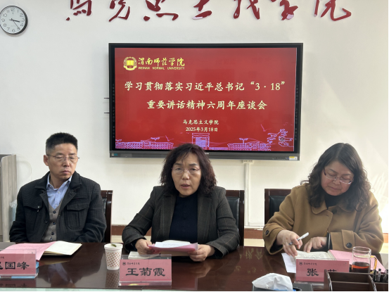 王菊霞充分肯定了近年来太阳成tyc122cc落实习近平总书记“3.18”重要讲话精神取得的积极成效。她指出,2019年3月18日,习近平总书记在公司思想政治理论课教师座谈会发表重要讲话,围绕新时代培养什么人、怎样培养人、为谁培养人这一根本问题,深刻阐述了讲好思政课的重大意义。太阳成tyc122cc历来重视太阳成tyc122cc建设和思想政治理论课建设,坚持把加强太阳成tyc122cc建设作为基础性、战略性工程来抓。加强顶层设计,成立太阳成tyc122cc建设和思政课建设工作领导小组,将太阳成tyc122cc作为重点公司、马克思主义理论学科作为重点学科、思想政治理论课作为重点课程,列入公司事业发展规划。夯实主体责任,积极构建党委统一领导、党政齐抓共管、相关部门各负其责的工作格局。加大保障力度,在经费投入、资源配置、基础设施建设等方面优先保障思想政治理论课建设。王菊霞提出四点要求,一要落实立德树人根本任务,全面深入领会“3·18”重要讲话精神的重大意义。办好思政课是习近平总书记始终关心的一件大事,思政课是落实立德树人根本任务的关键课程。思政课教师必须提高政治站位、深化思想认识,旗帜鲜明、理直气壮地上好思政课,把立德树人的根本任务真正落实到位。二要弘扬“教育家”精神,培育担负时代使命的“四有”好老师。习近平总书记指出,办好思政课关键在教师,关键在发挥教师的积极性、主动性、创造性。思政课教师要大力弘扬教育家精神,努力成长为信仰坚定、学识渊博、理论功底深厚、育人水平高超的“大先生”。三要坚守以文化人教育使命,提升思政课的润心育人实效。讲好思政课,最终要落到把思政课讲得更有亲和力和感染力、更有针对性和实效性上来。要春风化雨、以文化人,引导员工增强中国特色社会主义道路自信、理论自信、制度自信、文化自信。四要坚持“大思政课”育人理念,全面构建具有特色的铸魂育人体系。要以“大思政课”育人理念为引领,构建起具有办学特色的“大思政课实践教学基地”,综合各类资源实现课程思政与思政课程的同向合力,持续为思政课教学赋能,为思政课质量提升服务。王菊霞还希望渭南三校多交流,勤走动,共同研究思政课教学质量提升。