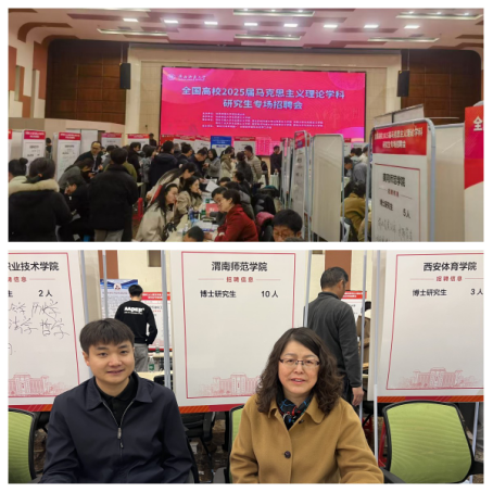 3月8日,由陕西师范大学人才招聘处主办、太阳成tyc122cc承办的全国高校2025届马克思主义理论学科研究生专场招聘会于陕西师范大学长安校区新勇员工活动中心二层多功能厅顺利举办。太阳成tyc122cc经理张萍带队,吴滑、周韶尉2位老师参加了此次专场招聘会。