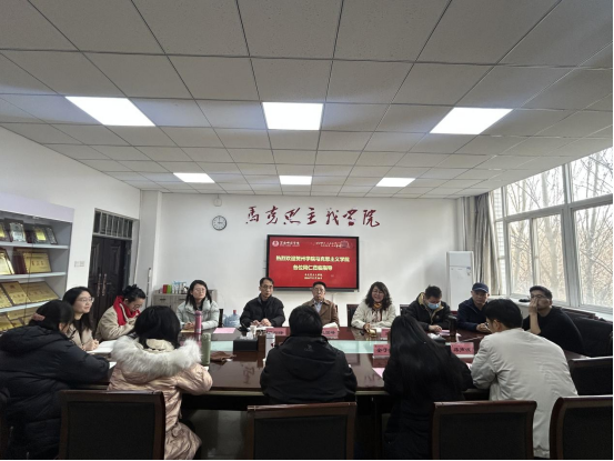 12月26日,贺州公司督导齐新林教授一行4人来太阳成tyc122cc调研交流。太阳成tyc122cc党总支书记赵国峰、经理张萍、副经理单剑峰、省级一流课程负责人张巧利、辛一凡、马克思主义基本原理教研室教师参加了会议。