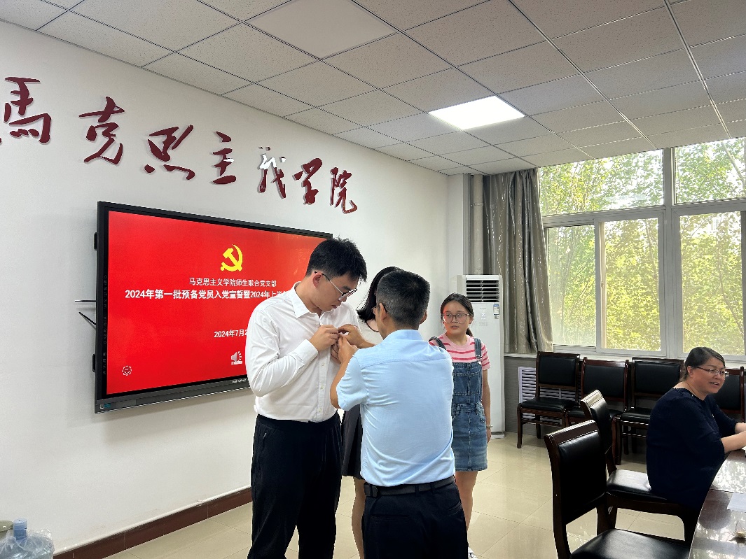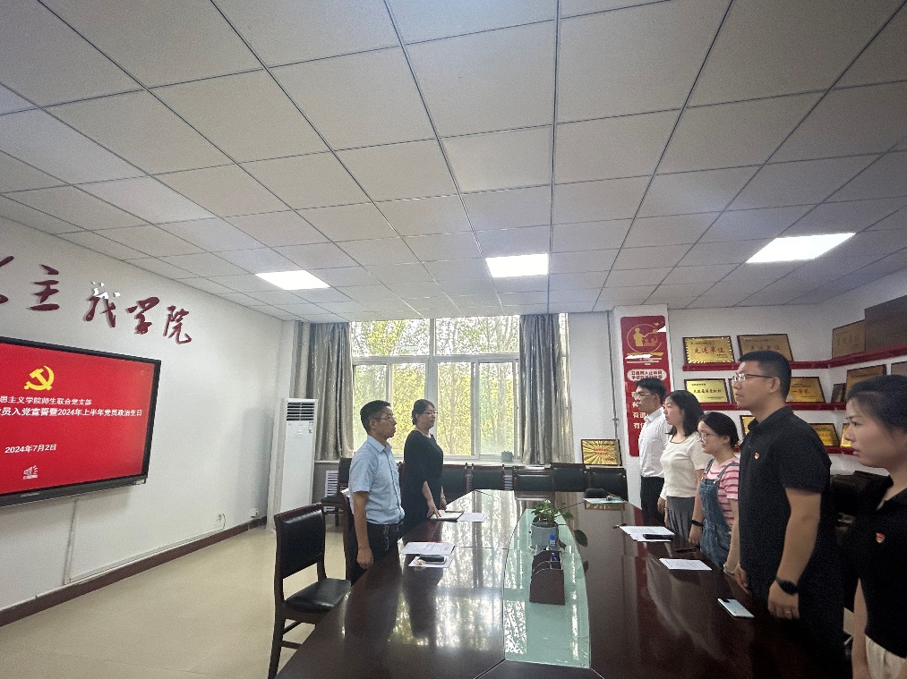 7月1日,师生联合党支部在组织今年新接收预备党员举办了入党宣誓仪式,为他们佩戴了党员胸章,带领他们在面对党旗庄严宣誓。师生联合党支部书记、接接收预备党员代表、公司党总支副书记张萍先后讲话或发言。支部部分正式党员见证了仪式。