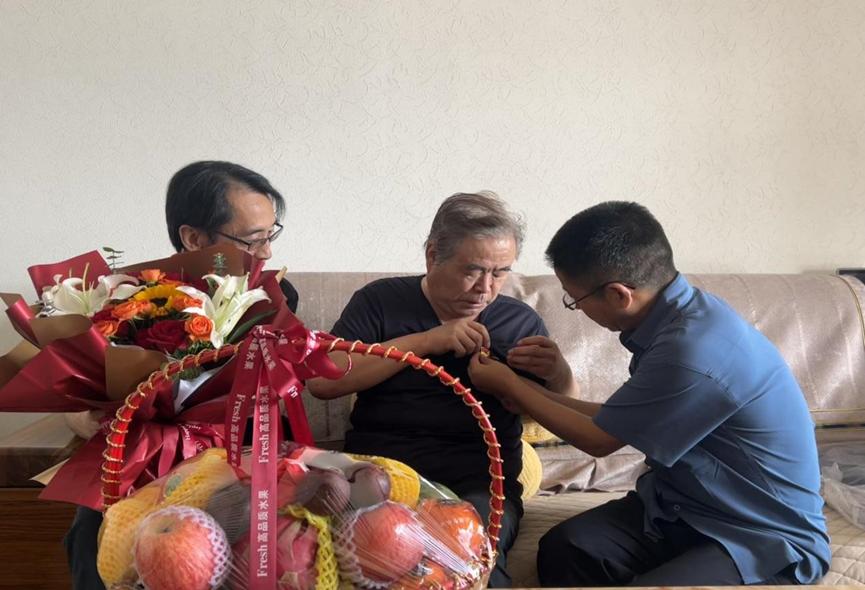 6月28日,公司总支书记、部分总支委员前往公司退休思政课教师、老党员、家庭较为困难、身体状况不佳的皇甫世杰老师家中慰问。总支为皇甫世杰同志佩戴了党员胸章,带去了表达敬意的鲜花和精美的果篮,听取了他对公司工作的建议,了解了其家庭生活、子女工作婚姻等方面的情况。