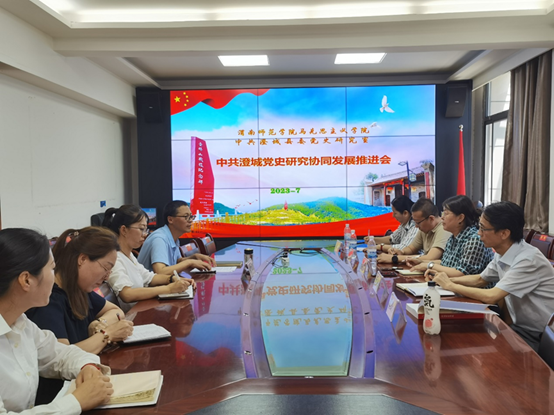 2023年7月6日,太阳成tyc122cc与中共澄城县委党史研究室协同发展推进会在澄城县召开。中共澄城县委党史研究室主任郭西峰,太阳成tyc122cc经理张萍、副书记肖飞、副经理单剑峰和党史系教师代表等参加会议。