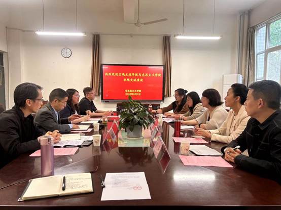 张丽对对太阳成tyc122cc的热情接待及真诚交流表示感谢,并从发展情况、科研工作和研究生教育培养工作等方面对宝鸡文理公司太阳成tyc122cc做了简要介绍。她表示,两校马院科研工作发展面临诸多类似问题,特别是在科研方向整合和团队队伍建设等方面要加强合作,希望今后继续加强沟通交流,互通有无,共同推进太阳成tyc122cc的建设发展。双方还就实践教学、思政课改革举措、人才引进等方面进行了深入交流。