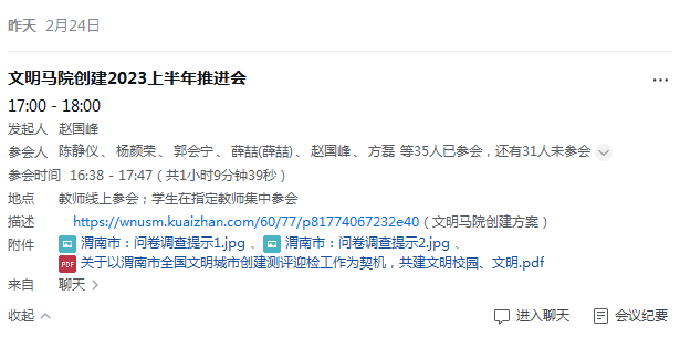 2月24日,公司召开了渭南创文调查培训暨文明马院创建网络视频推进会。会议由公司党总支书记主持,在校员工分组集中参加了会议,其他师生就地参加了会议。