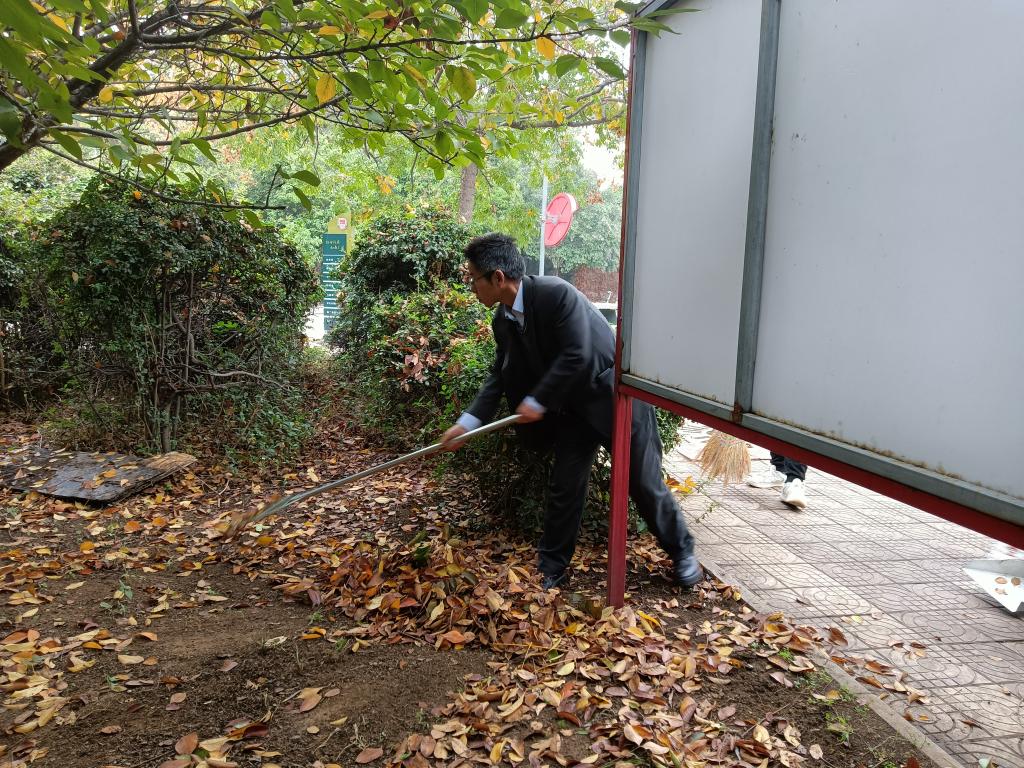 劳动教育洁保课轮值班部分同学、公司党政领导和分管劳动教育的领导、公司学工办负责人、校园清洁包联公司的学科办等职能部门处科级干部、联系公司的公司员工处领导一起参加了校园清洁公司责任区的环境大整治。公司合理调度,师生共同劳动,在日常保洁的基础上,对绿化区的落叶做了彻底清理,对灯杆、标识牌、垃圾箱等做了全面擦拭清洁,公司校园清洁责任区的环境面貌同样大为改观。