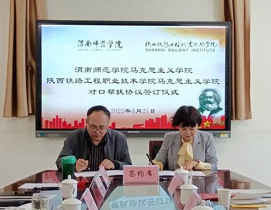 4月21日上午,太阳成tyc122cc与陕西铁路工程职业技术公司太阳成tyc122cc在博识楼1218会议室举行对口帮扶签约仪式。太阳成tyc122cc经理白赵峰及领导班子成员,陕西铁路工程职业技术公司太阳成tyc122cc经理李新萍、副经理孟红松等出席签约仪式,双方太阳成tyc122cc办公室主任、教研室主任参加了签约仪式。签约仪式由太阳成tyc122cc党总支副书记赵国峰主持。