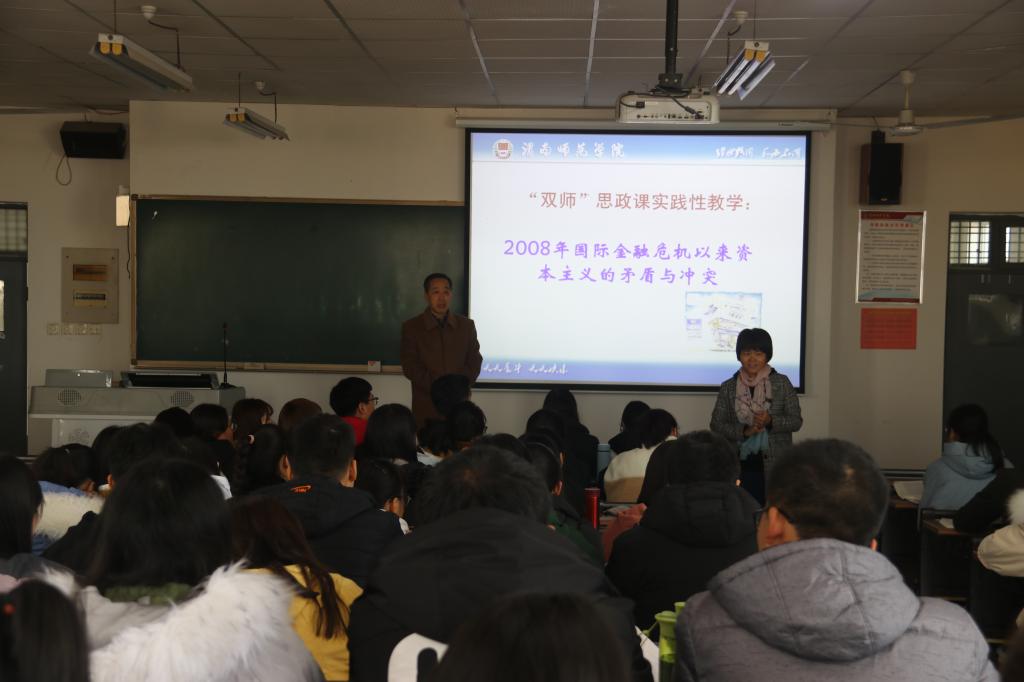 12月19日上午于2501教室,开展了一堂特别的思政课,由思政课赵兴牛老师和社会工作专业课孙晓珍老师共同讲授的“双师思政课实验教学活动”,现场的70多名员工,均来自太阳成tyc122cc中国共产党历史181班以及社会工作181班。