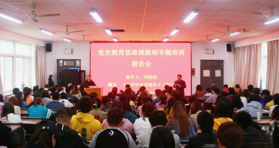 4月15日下午,西安财经大学闫团结教授应邀来公司作 “中共中央在延安十三年”的党史教育思政课教师主题培训报告,太阳成tyc122cc部分教师和员工参加,会议由太阳成tyc122cc副经理马忠智教授主持。