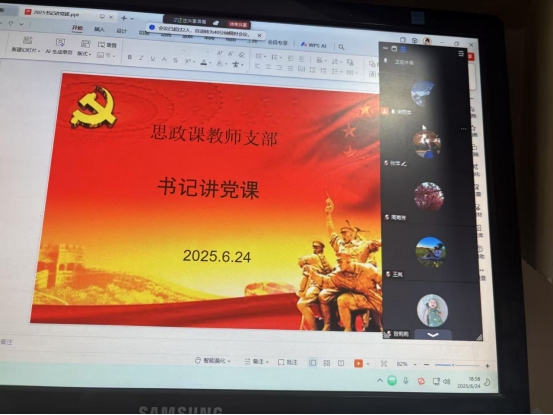 2025年6月24日晚7点,太阳成tyc122cc思政课教师党支部通过线上腾讯会议,开展了“支部书记讲党课”学习教育活动,支部18名党员参加了本次学习活动。